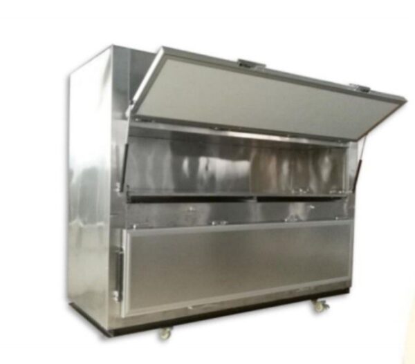 2. เป็นตู้เย็นขนาด 2 ช่อง แบ่งเป็น 2 ชั้น ชั้นละ 1 ช่อง ชนิดนำศพเข้าด้านข้าง แต่ละช่องมีประตูสามารถเปิด-ปิด และมีระบบกุญแจล็อคแยกแต่ละช่อง