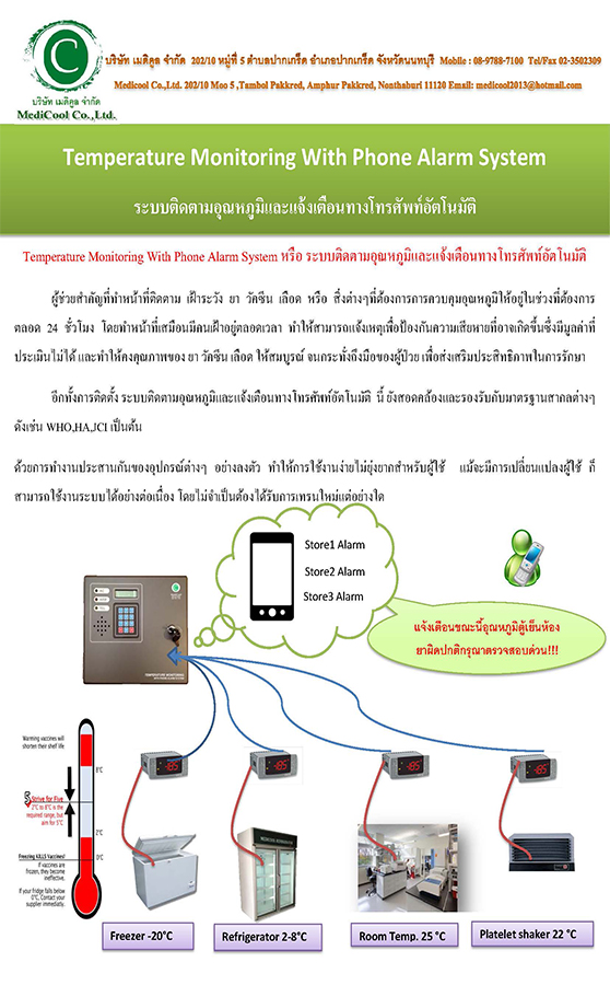 -มีสัญลักษณ์แจ้งเตือนที่หน้าเครื่อง กรณีไฟดับ และอุณหภูมิผิดปกติ