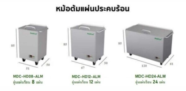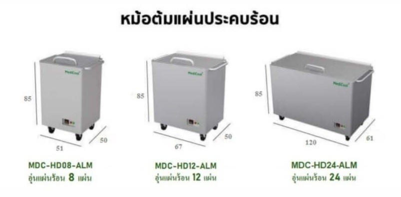 หม้อต้มแผ่นความร้อนผลิตจากโรงงานที่ได้รับมาตรฐานทางการแพทย์ ISO9001:2015 / ISO13485:2016 และ ISO17025 พร้อมเอกสารรับรองมาตรฐาน มีทั้งหมด 3 ขนาด คือ อุุ่นแผ่นร้อน 8 แผ่น, 12 แผ่น , 24 แผ่น